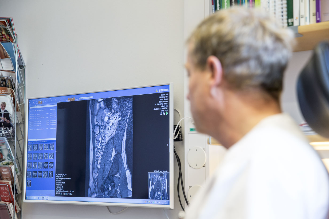 – Försöket med platt-tv:n var min egen idé. Många av mina patienter är unga personer med Crohns sjukdom eller ulcerös kolit som kommer hit till mottagningen med sina föräldrar. Genom att visa upp journalen på en storbilds-tv kan vi tillsammans gå igenom det som är viktigt eller titta närmare på labprover och röntgenbilder, säger Per Hammarlund som även är skyddsombud på kliniken.