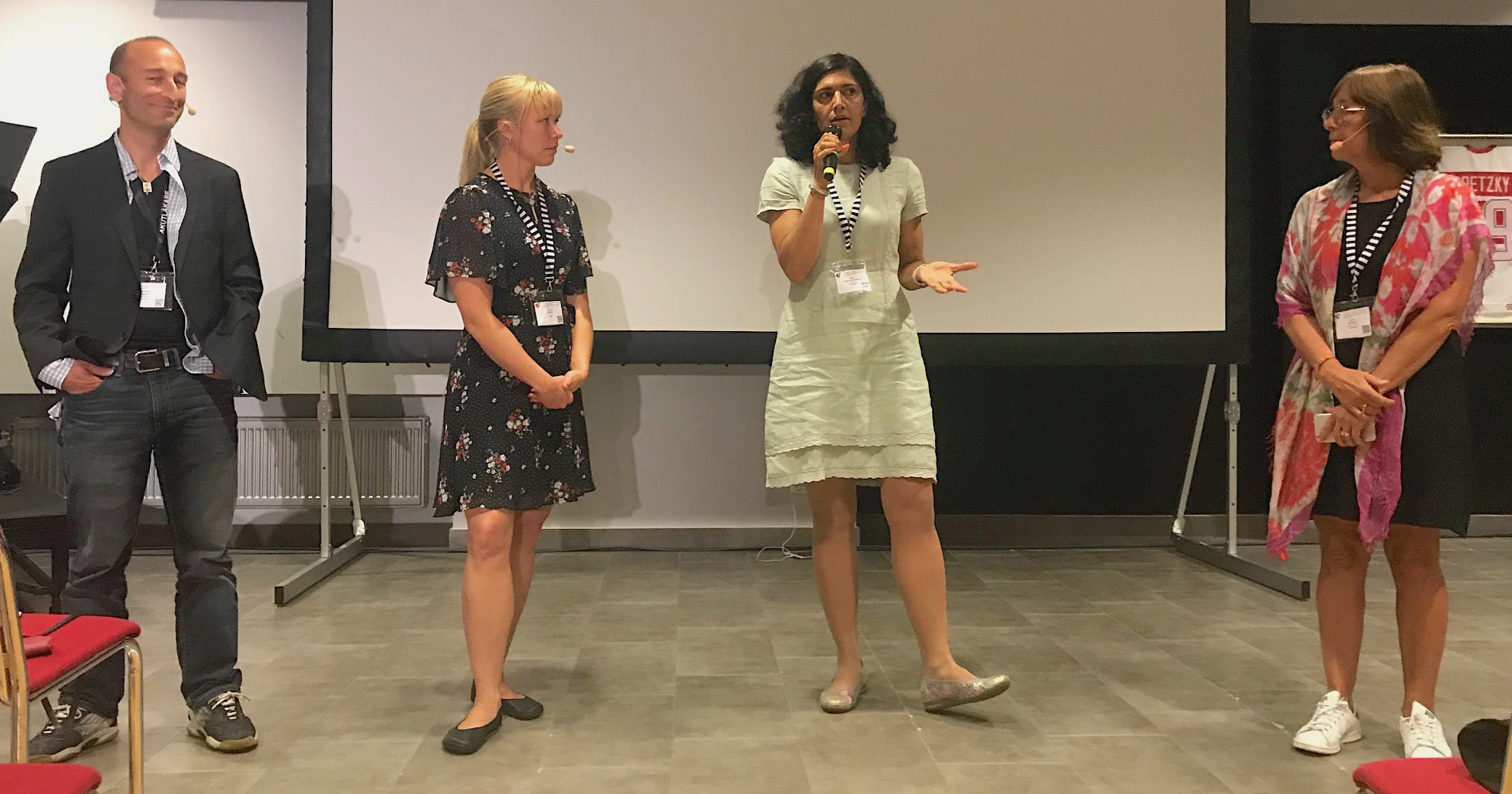 Bristen på vårdplatser diskuterades vid ett av Sjukhusläkarnas seminarier på FSL-mässan i Malmö. Från vänster Nicholas Aujalay,Anne Liljedahl, Nasim Farrokhnia och Karin Båtelson.