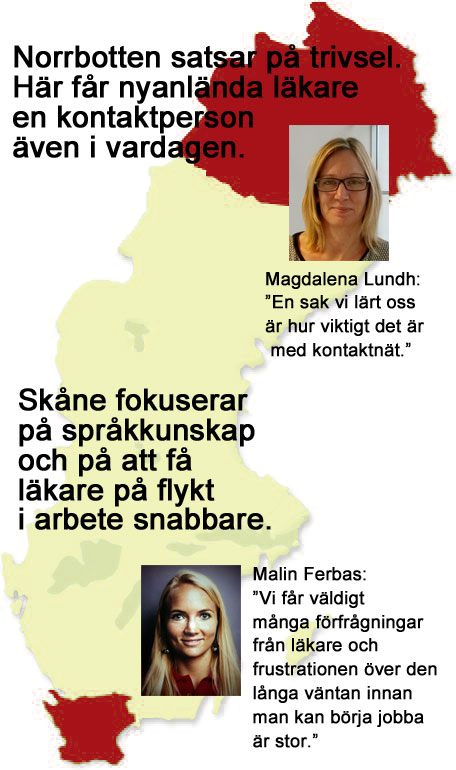 – Det är fortfarande långa handläggningstider och provtjänstgöringar som måste genomföras. Om man talar om att fylla luckor lite snabbare så är det i första hand läkare inom EU som måste rekryteras. Men det är viktigt för oss att även tänka på långsiktiga lösningar som den här för att fylla vårt framtida rekryteringsbehov, säger Malin Ferbas och tillägger att frågan om att underlätta för den vårdpersonal som kommer via flyktingströmmarna just nu är en prioriterad fråga bland politikerna.