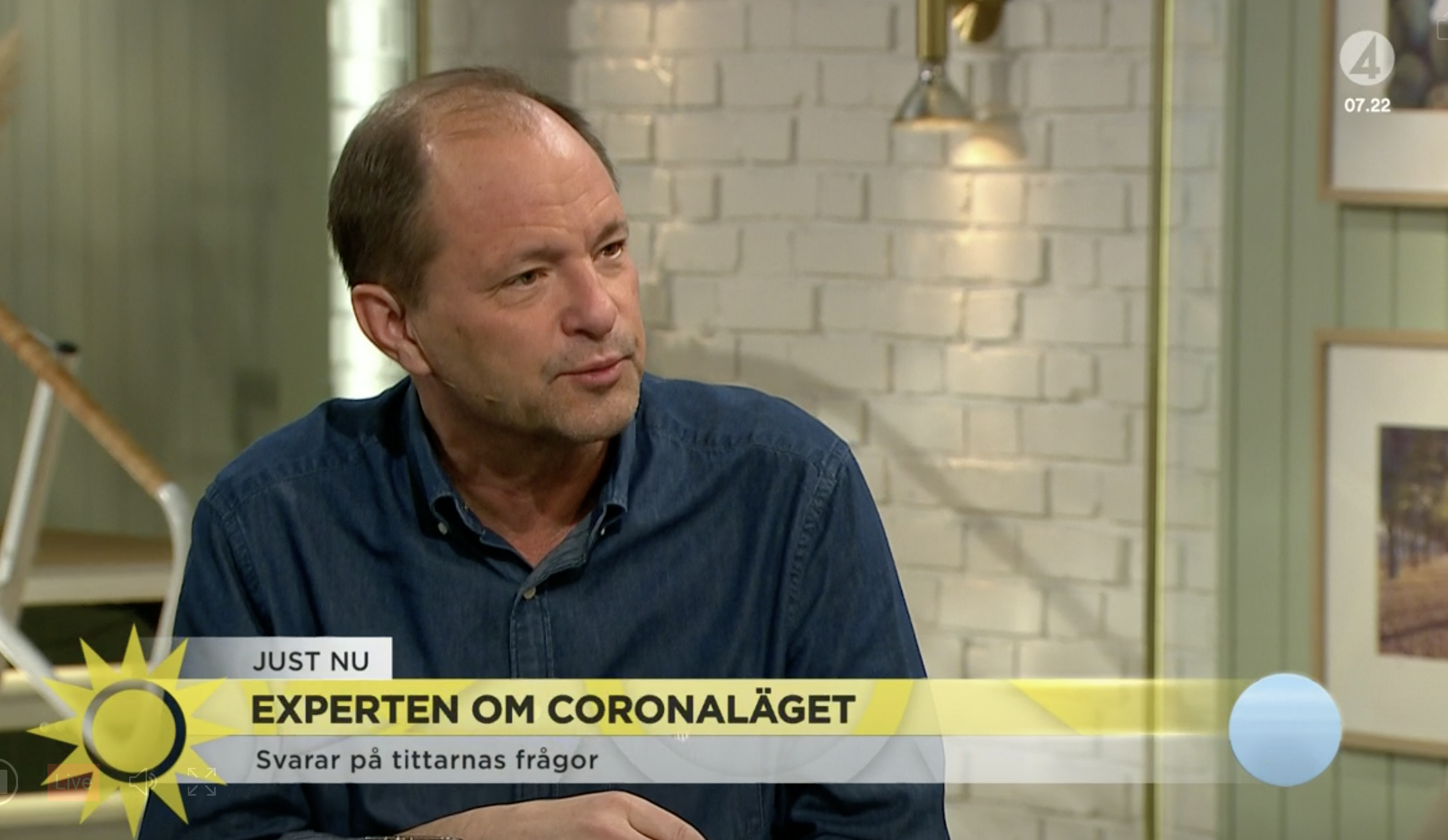 Skärmdump från Tv4 när Björn Olsen svarar på tittarnas frågor.