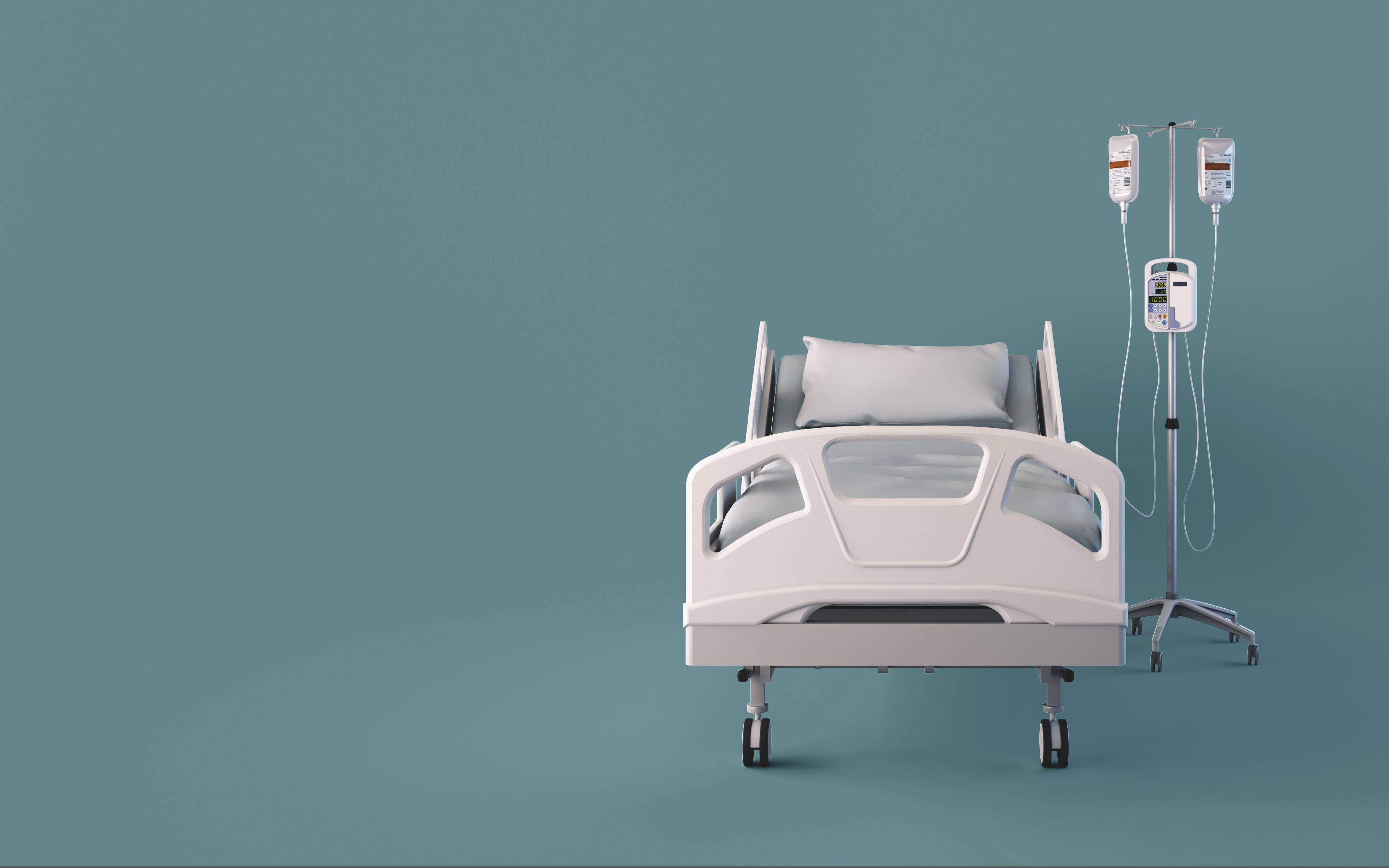 Front view of hospital bed isolated on blue background.Concept for insurance.3d rendering