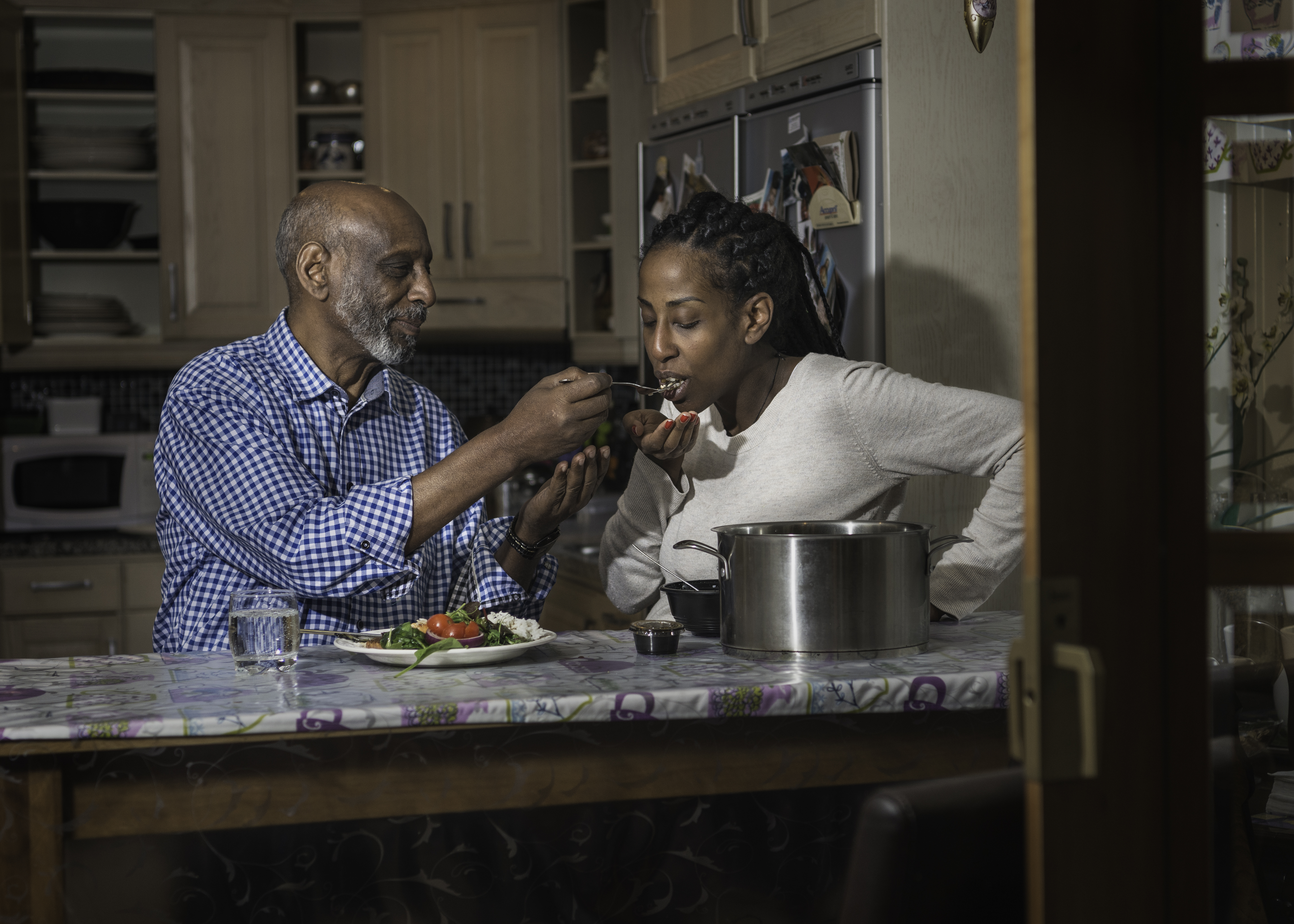 – Han är jättedålig på att äta. Under fjorton månader befann sig Emy på plats i Addis Abeba och varje dag tog hon med sig mat till sin pappa i fängelset. Samma driv finns än idag hemma i Sverige. Hon berättar att han efter frigivningen varit överraskande väl- fungerande, men att spåren av fängelse- tiden gör sig mer eller mindre påminda.