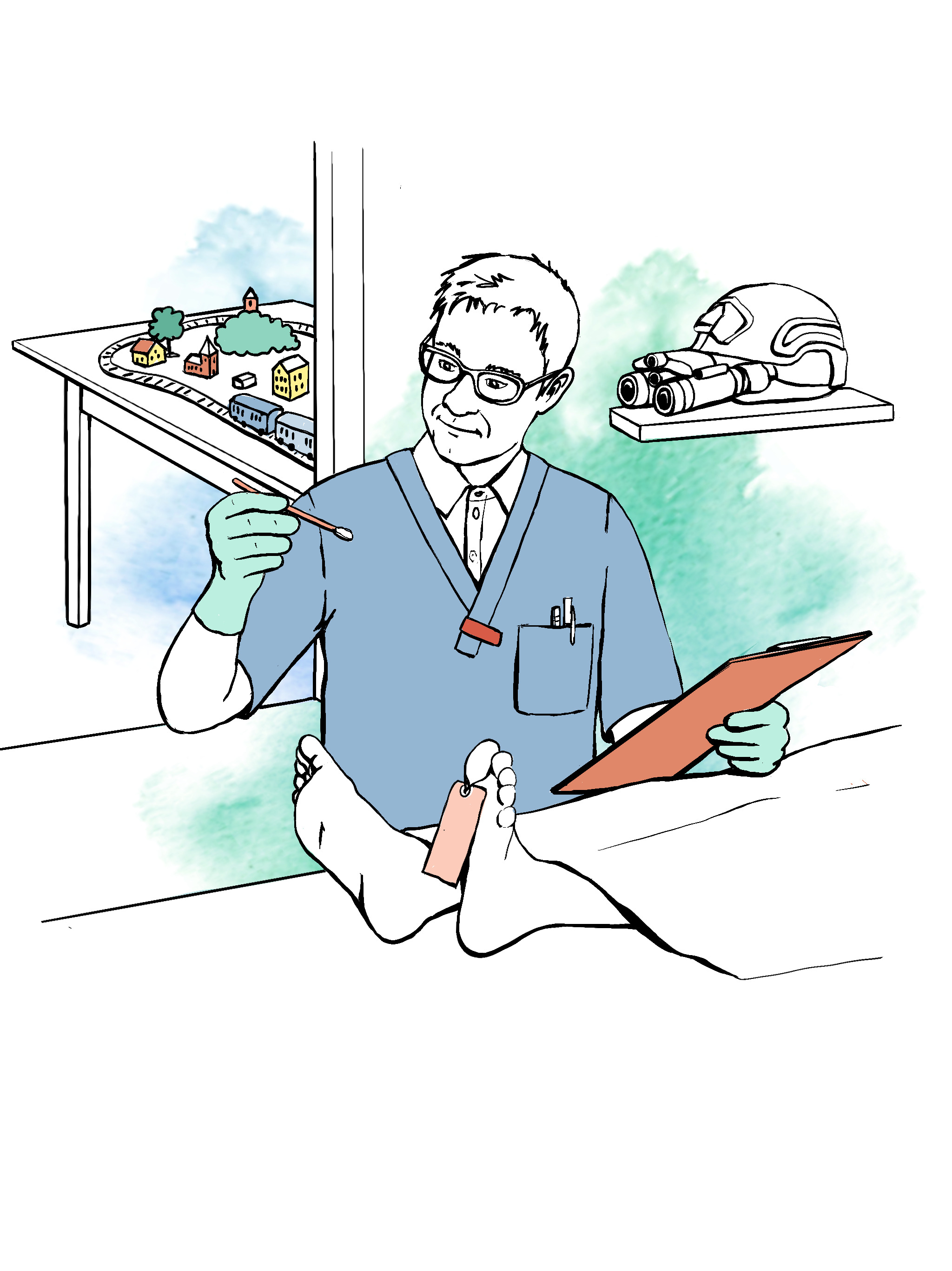 Det finns en noggrannhet och ett pilleri i det här yrket och det är samtidigt ganska tufft så jag ser framför mig att väldigt många av dem har en hobby som till exempel modelltåg. Kanske har de ett hobbyrum på kliniken med en tågbana. De saknar doftsinne precis som urologerna. De har lite problem med arbetsminnet och är därför väldigt beroende av sin diktafon.