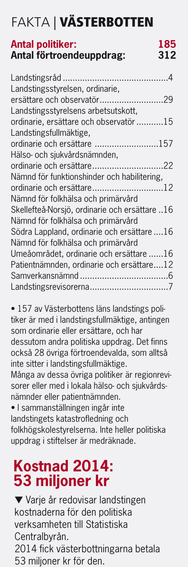Västerbottningarna betalade mest i landet per person för den politiska verksamheten i landstinget år 2013 och tredje mest år 2014.