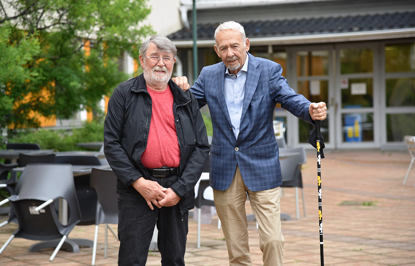 Njurpatienten Åke Östberg och numera pensionerade kirurgen Lars Frödin träffas igen 46 år efter njurtransplantationen. Foto: Adam Öhman