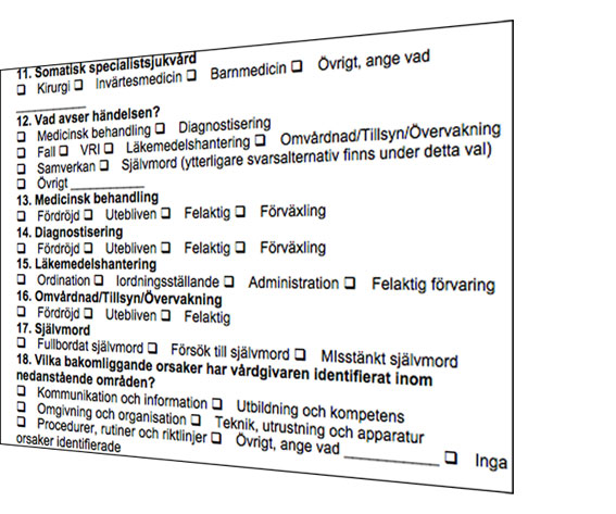 Och grovt får nog just bli ordet: Ingenstans i enkäten framgår hur det gick för patienten, något som anmälaren förväntas fylla i på den obligatoriska blanketten. Det registreras alltså inte i enkäten om patienten dog till följd av händelsen.