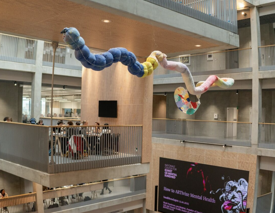 Vernissagets stora snackis var den gigantiska, fullstoppade tarmen i taket skapad av sjuksköterskan Rebecka Hallbert.