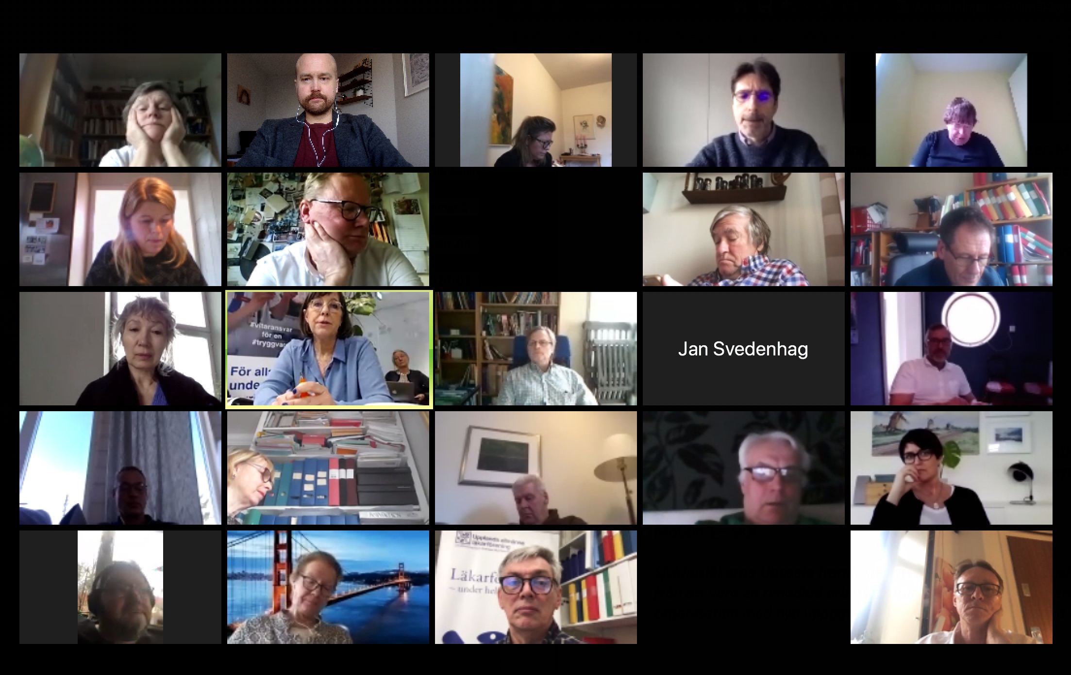 Karin Båtelson, ordförande i Sjukhusläkarna, och övriga deltagare på fullmäktigemötet var med via länk.