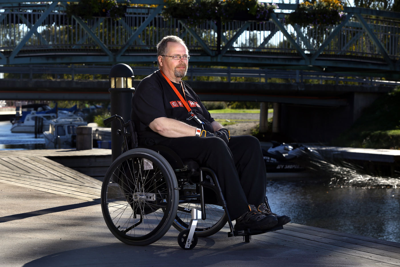 – Jag hade fått högerfoten under motorcykeln och det gjorde ordentligt ont. Jag ringde efter mina kamrater som fick komma och lyfta bort den. Foten såg hemsk ut. På måndagen gick jag till vårdcentralen. En stukning. Jag gick i fjorton dagar men blev inte bra så jag fick söka akut. Då hade det gått stötar genom benet hela dagen.