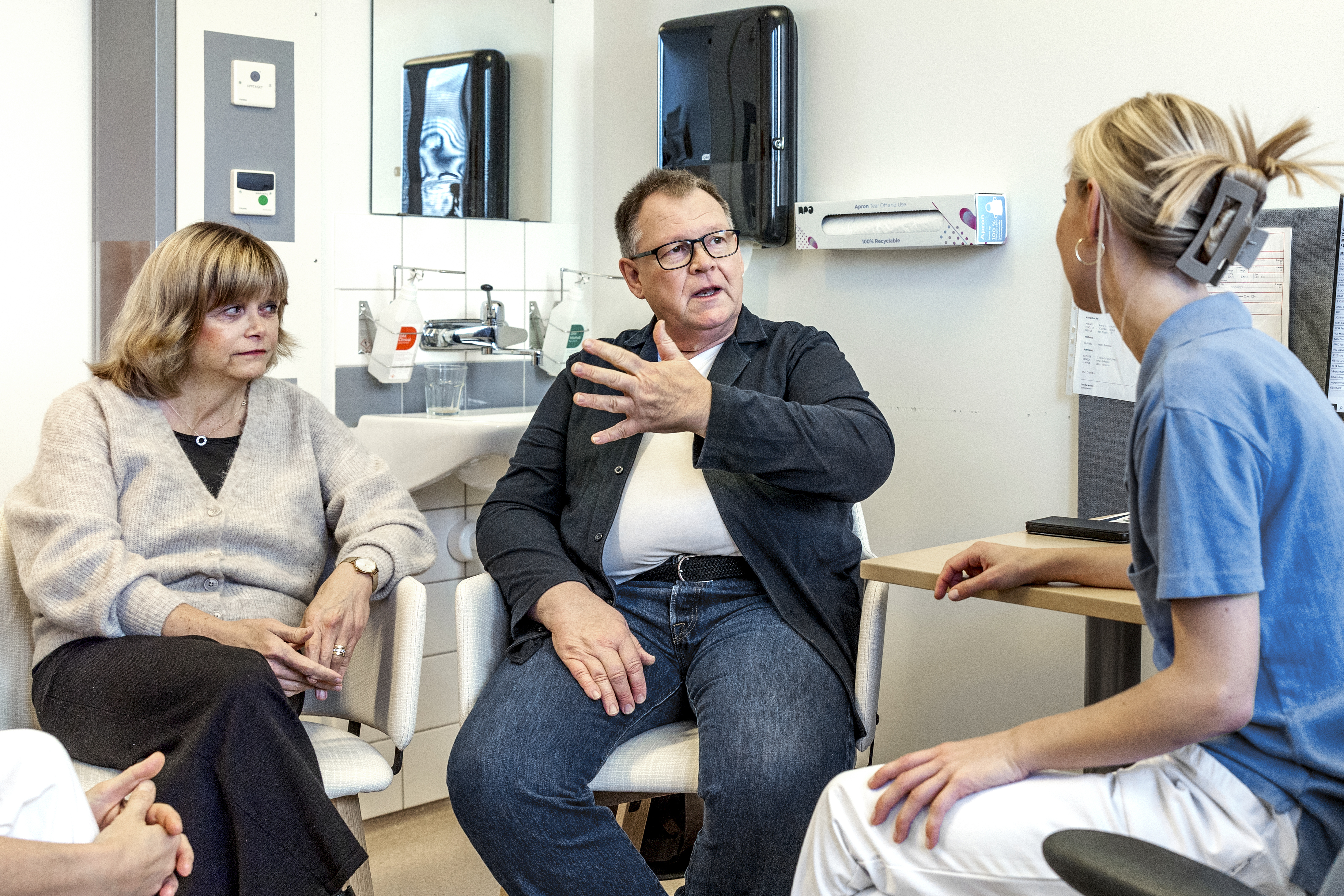 Lars Johansson lever med metastaserad prostatacancer. Här med sin fru Katarina i samtal med ST-läkaren Sara Woxlin.