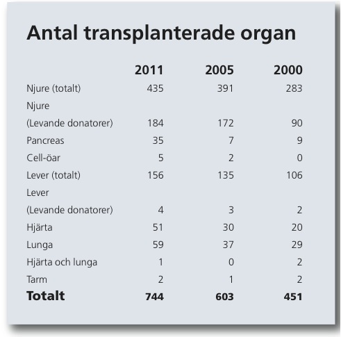 I januari 2012 väntade 763 personer på ett nytt organ.