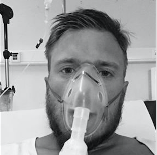 Andreas Hellmers led av en utbredd Mykoplasmapneumoni och hade svårt att andas när han lades in på AVA-kliniken på Karolinska. Foto: Privat