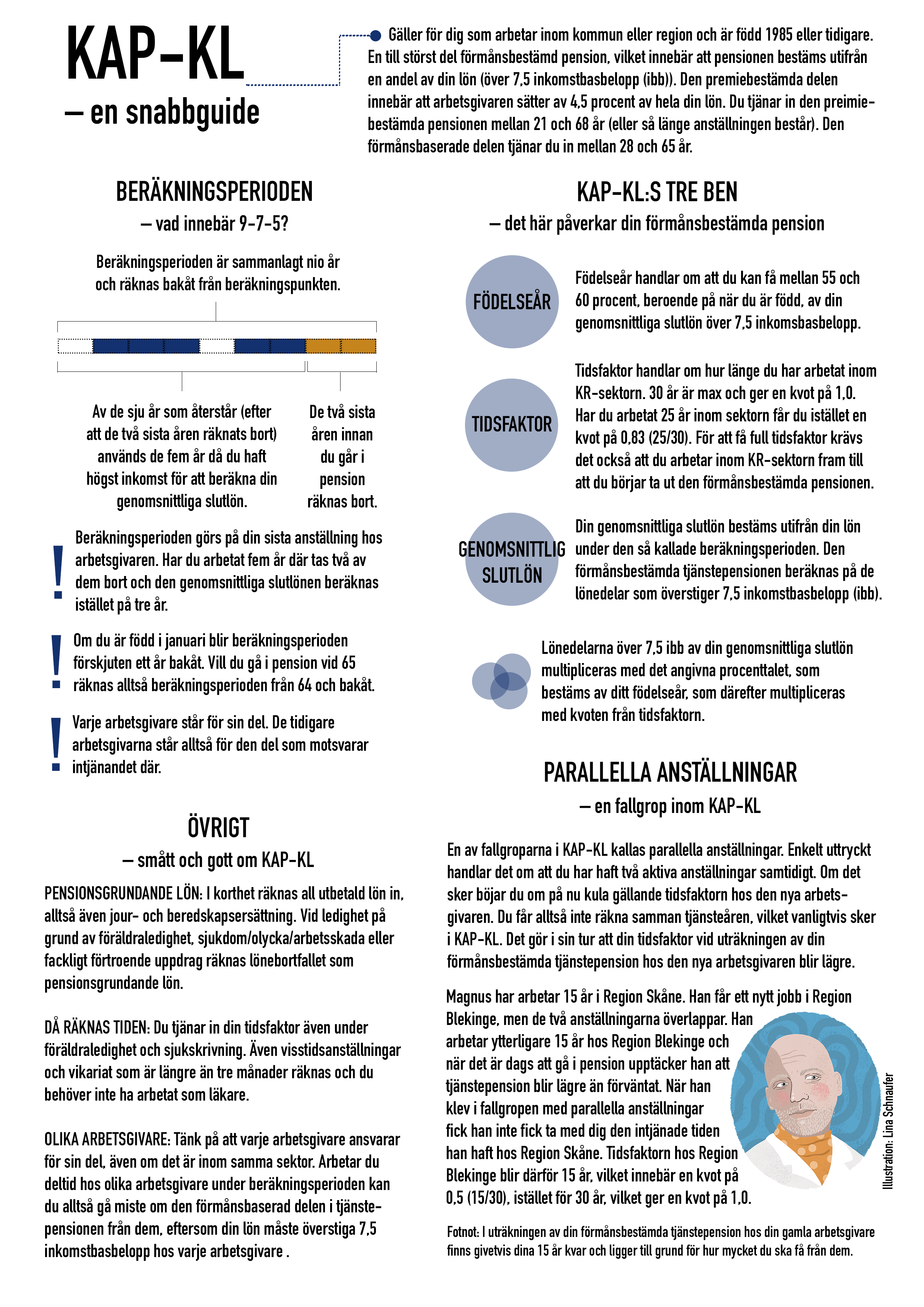 Eftersom beräkningsperioden, alltså den period din genomsnittliga slutlön beräknas på (inom KAP-KL), alltid baseras på din senaste anställning hos arbetsgivare i kommun eller region kan de val du gör i slutet av karriären göra stor skillnad.
