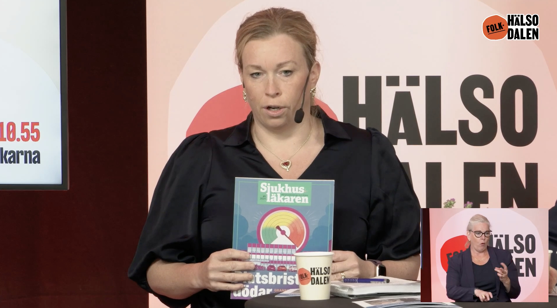 Samtalsledaren Göran Hägglund ställer frågan till panelen hur man ska kunna ändra situationen och Sjukhusläkarnas Elin Karlsson ber om ordet: