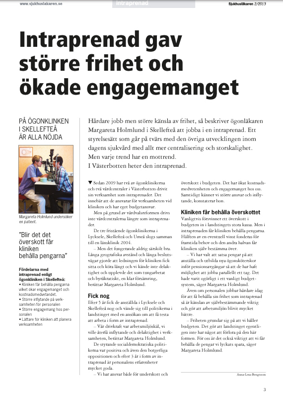 Året var 2013 och Sjukhusläkaren skrev om succékonceptet att göra dåligt fungerande länskliniker till intraprenader i Lycksele och Skellefteå. Nu ska de bli länskliniker igen mot sin vilja.