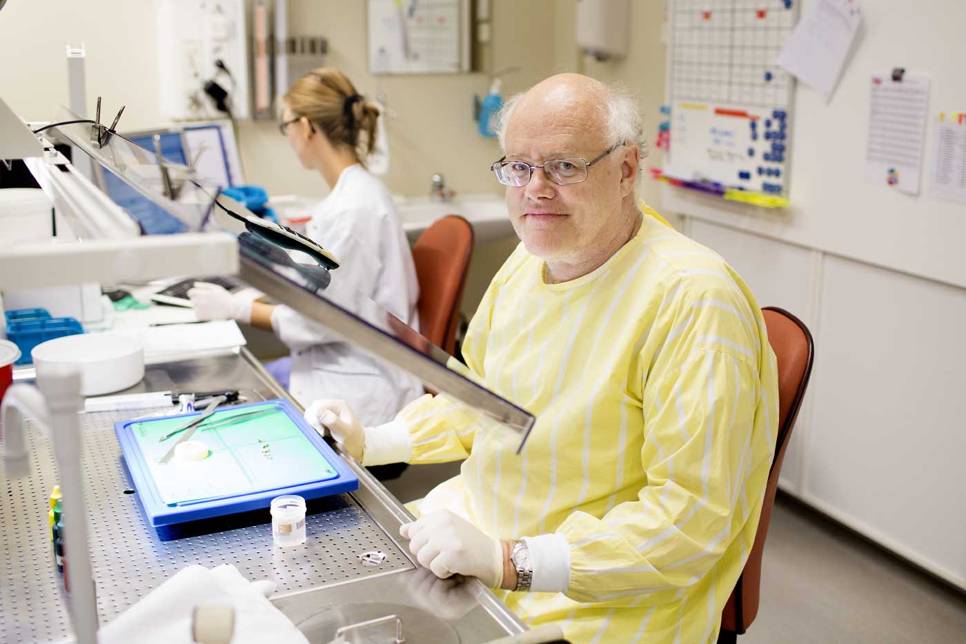 – Jag började inte med medicin så tidigt utan läste andra saker först – humaniora och annat. Och jag jobbade som vårdbiträde och mentalskötare. Det var på den tiden som man tog in studenter med andra yrken på läkarutbildningen – det gjorde man på 70-talet. Man kan inte generalisera kring mitt exempel, men på den tiden var laboratorieläkare inte heller speciellt populärt. Men en professor i Umeå tyckte att jag skulle komma hit och till allas stora förvåning gjorde jag det och det slutade med att jag blev patolog och har jobbat med det sedan 1988.
