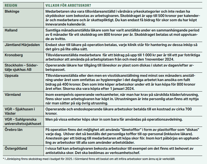 Endast fyra av landets regioner betalar arbetsskor till samtliga läkare. Det visar Sjukhusläkarens genomgång. En av de fyra är Region Kronoberg, där man nyss har fattat beslut om att införa skobidrag till samtliga fastanställda.